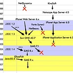 태초에 웹이 있었으되... 거기 넷스케잎이 있었더라. 썬의 개발자 블로그에서 이 그림을 보니 감회가 새롭다. 넷다이나믹스, 넷스케잎서버... 첫 직장에서 내가 담당했던 제품들이었다. 넷스케잎서버가 아이플래닛, 썬원어플리케이션서버를 거쳐 J2EE SDK에 번들로 끼워주던 SJAS(썬 자바 어플리케이션 서버), 그리고 오픈소스 프로젝트인 유리 물고기 기반의 SJAS 9까지... 그냥 옛날 생각이 나서 인용해 본건데... 썬의 개념없는 브랜딩과 마케팅을 단적으로 보여주는 그림일지도...
